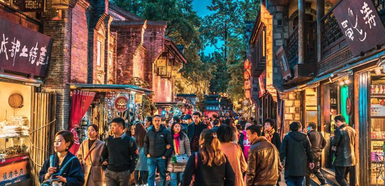 錦里古街是一條融合三國文化與川西民俗的仿古街道,全長約550米;街道兩側古建林立,紅燈籠高掛,充滿歷史韻味;街區還有蜀繡、糖畫等手工藝攤位,集美食、文化與購物於一體的特色古街,白天古樸,夜晚燈火通明,氛圍濃厚。