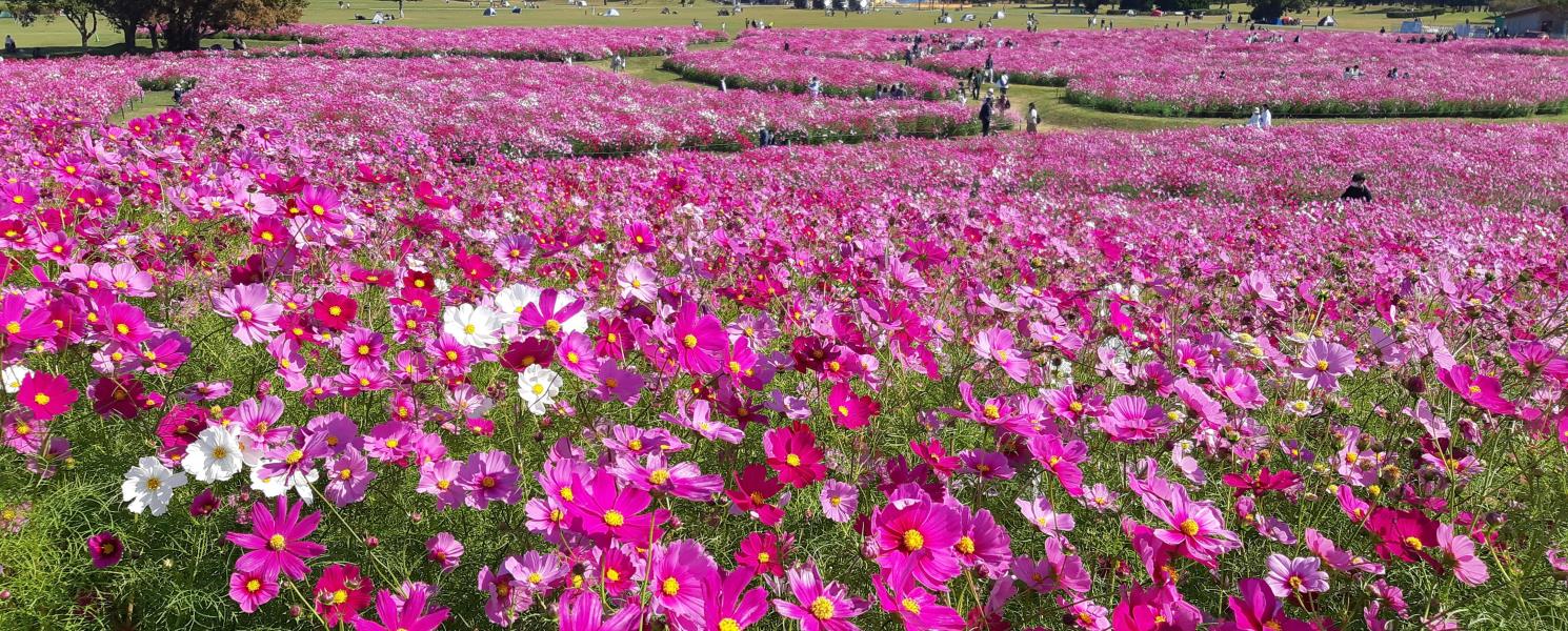 10. 海之中道海濱公園花季參考:●綠色掃帚草:8月上旬~9月上旬●紅色掃帚草:10月中旬~10月下旬●大波斯菊:10月中旬~11月上旬