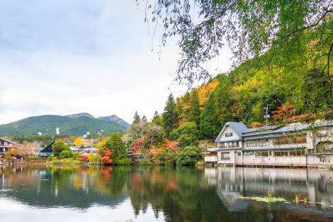 湯布院地區最具代表性的觀光景點之一,當陽光照耀在清澈的湖面時,所產生的折射彷彿金色魚鱗般的閃爍而得名,終年自湖底湧出的溫泉,造成湖上白霧迷濛的景象,更是如同夢幻仙境一樣迷人。