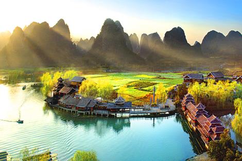 桂林是中國熱門的旅遊城市,以風光奇秀名揚天下,人稱「千峰環立,一水抱城」,是世界各地觀光客公認的中國「十大名勝」名列第二的風景旅遊勝地,有山清、水秀、洞奇、石美四大特點,難怪有詩寫道『願作桂林人,不願作神仙』。