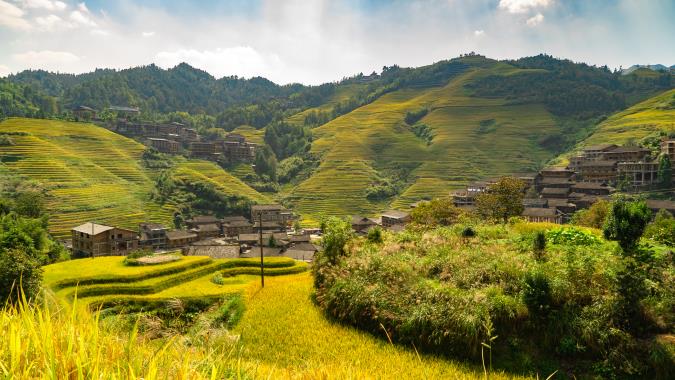 建於元朝,距今已有近700年的歷史。是壯、瑤民族勤勞智慧的結晶,梯田周圍山青水秀、瀑布溪流成群,龍脊梯田四季美景如畫,四季各有美景神韻。這裡的壯、瑤民族世世代代居住在青瓦木樓之中,男耕女織,淳樸美良。