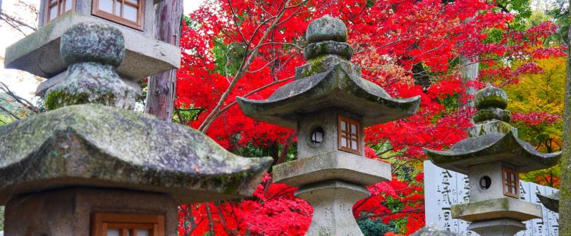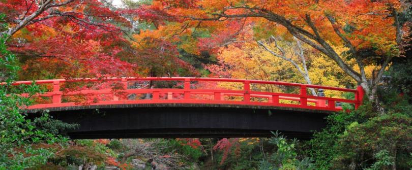 宮島的象徵是漲潮時彷彿漂浮在海上的巨大鳥居。距離嚴島神社步行約6分鐘的紅葉谷公園是著名的賞紅葉景點,其中朱紅色的紅葉橋周圍的景色尤其值得一看。還可以看到很多野鹿,如果能和秋天的紅葉合照的話一定會拍出很棒的照片。