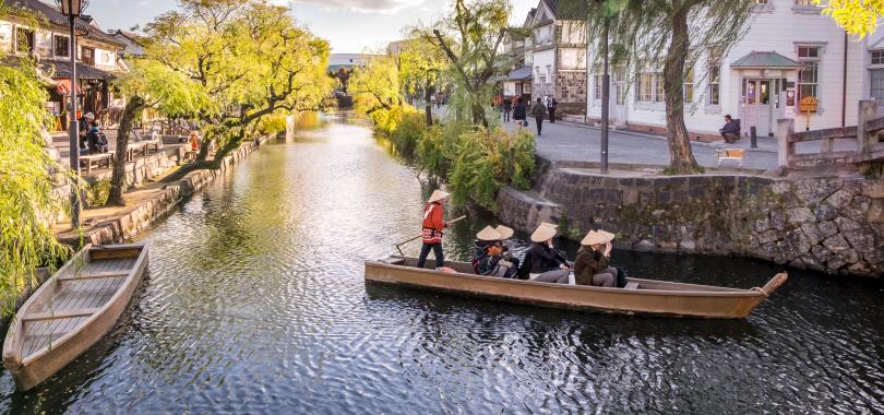 白牆倉庫、海參牆、柳樹成行,景色古雅。傳統建築營造的街景和倉敷川沿岸的復古現代風景繼續讓人們著迷。這裡林立著販售倉敷帆布、倉敷牛仔布等倉敷品牌的時尚商店,以及翻新後的聯排別墅內的咖啡館,一年四季都擠滿了遊客。