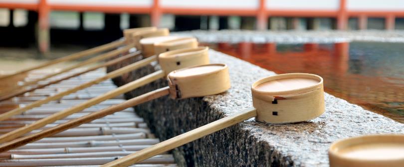 建在海上的嚴島神社,外觀有著古樸的絲柏皮屋頂,朱紅色棟樑,有如一幅調和的日本畫,風光明媚的神社內飼養著神鹿,其中漲潮時佇於海上的木造『朱紅色大鳥居』更是聞名全日本。