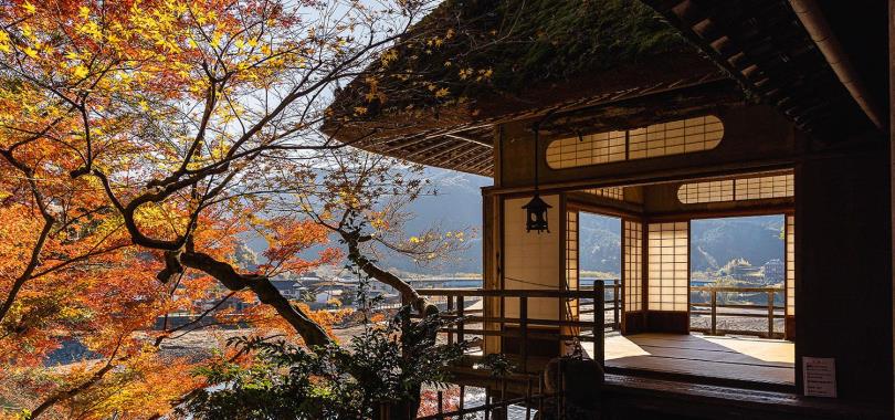 面向肱川流域第一觀光勝地「臥龍淵」,是一座茶室結構的知名建築,別名「大洲的桂離宮」。連設計細節都極盡奢華。潔淨的空氣洗淨心靈,靜謐時刻讓人忘卻俗世煩憂,是能讓您邂逅日本傳統之美與質與風格的罕見知名建築。