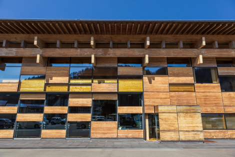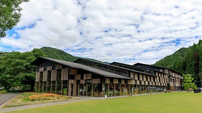 為提供在地居民學習、休憩環境,大量使用町產杉木以檮原町森林為意象打造的森林圖書館,素雅的外觀與背後翠綠的山林融合,內部則以隈氏建築擅長的木條堆疊手法打造宛如森林般的枝幹垂葉,層層階梯猶如千枚田。