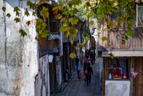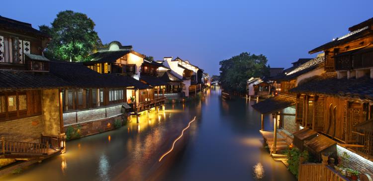 擁有1300年歷史的烏鎮,處於上海、杭州、南京三大城市中間,京杭大運河穿鎮而過,是江南水鄉六大古鎮之一。烏鎮至今仍保持完好的舊時傳統建築,全鎮以河成街、橋街相連、依河築屋,長達數公里的老街,皆舖上了青石板,黛瓦朱門、小巷蜿蜒曲折,有如迷宮,走進巷弄間,兩邊山牆高聳,將頭頂上的天空遮掩得只剩一條窄窄的線,別有一番韻味!
