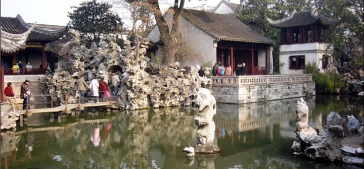 各式奇特形狀的太湖石,從不同角度看,皆有不同感受。園中著名的「九獅峰」是在小方廳北面的奇特假山,發揮想像力仔細一看還真可數出9隻不同造型在嬉戲的石獅子。園中最大的假山群,共有9條路線、21個洞口,如迷宮似的小徑蜿蜒上下,進入其中後,不繞個幾圈,可是出不來的,也難怪乾隆皇帝還賜了「真趣」匾額,顯露出自己的喜愛。