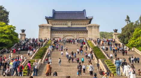 中山陵位於南京市中山風景區,是國父孫中山的安息之地,環繞於翠綠群山間。整座建築群佔地200多畝,建築呈中軸對稱,俯瞰景區為「自由鐘」形。以白色花崗岩和鋼筋水泥建造,屋頂覆蓋青色琉璃瓦,氣勢莊嚴磅礡,與台灣的「中正紀念堂」類似。中山陵主體建築「祭堂」位於山頂,設有三個拱門,象徵《三民主義》的「民族」、「民權」、「民生」。