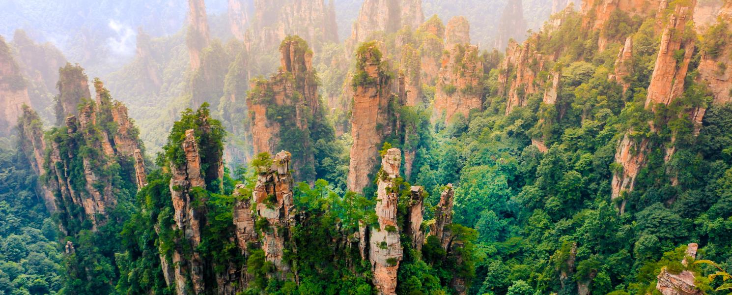 是中國首座國家森林公園及世界自然遺產,以上千座砂岩石柱峰林聞名,宛如電影《阿凡達》中的漂浮山。園內景致多樣,金鞭溪的秀麗、袁家界的奇幻。森林覆蓋率高達98%,生物多樣性豐富,被譽為天然大氧吧。